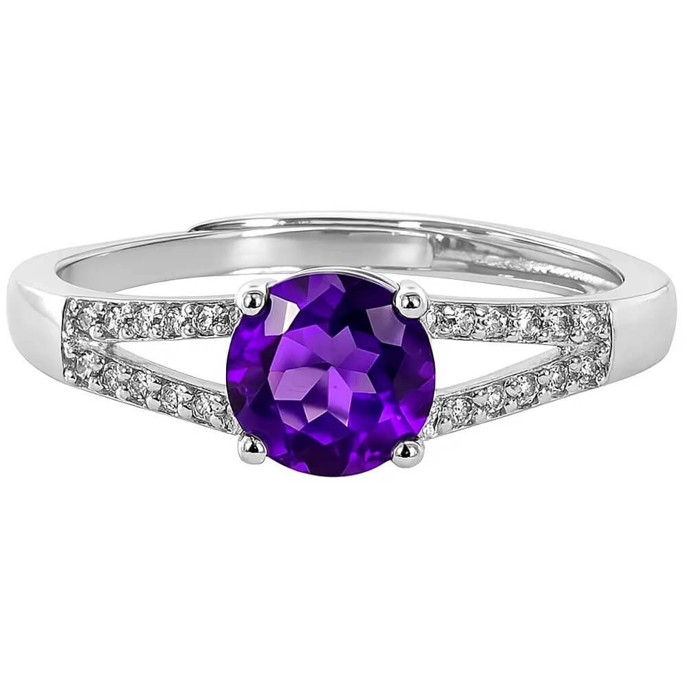 Inel Ametist cu strasuri, piatra fericirii, inoxidabil reglabil