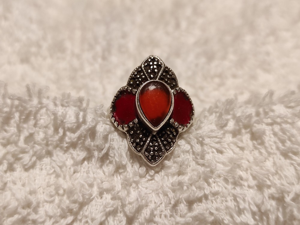 INEL argint cu CARNEOL ornat SPLENDID cu email ROSU model TRIBAL de efect SUPERB