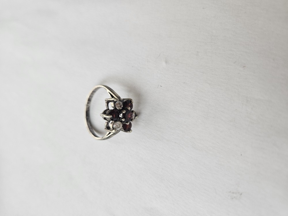 Inel din argint cu granate si zirconii, marimea 61, greutate 3.13 gr, marcaj argint , in stare buna, cumparati cu incredere, orice produs se poate returna! Transport doar prin Posta Romana!