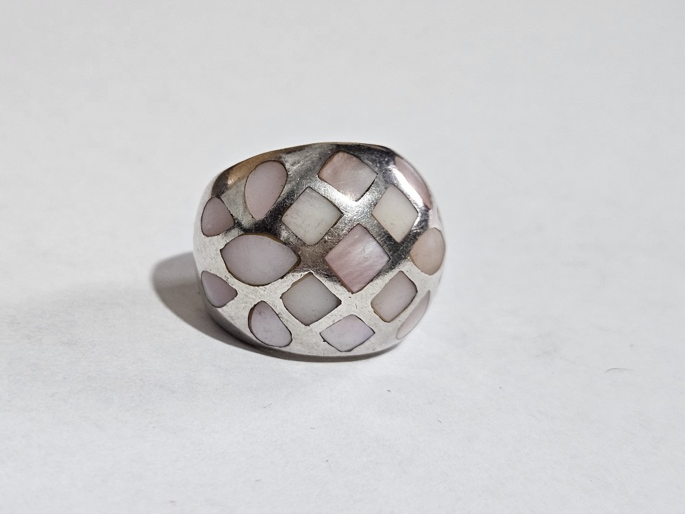 Inel din argint cu sidef , marimea 55, greutate 8.18 gr, marcaj 925 , in stare foarte buna, cumparati cu incredere, orice produs se poate returna! Transport doar prin Posta Romana!