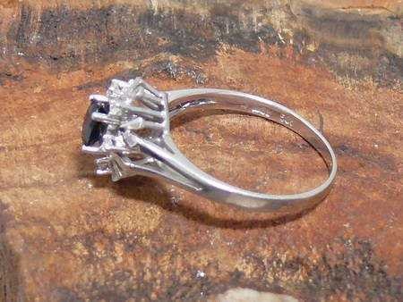 Reducere sarbatori superb inel aur alb 14crt cu safir ca. 5x4 mm