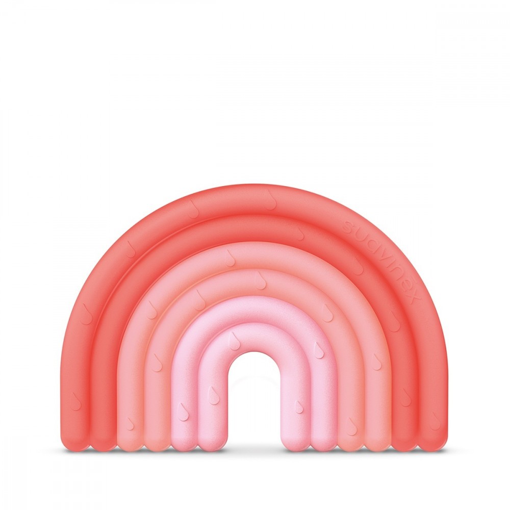 Inel de dentiție din silicon Curcubeu, roz, Suavinex