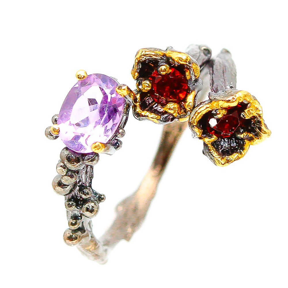 Inel din argint 925 cu ametist si granat, 7.5, reglabil