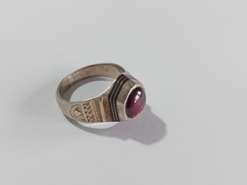 Inel din argint cu caboson ametist, marime 53, greutate 5.9 gr, in stare buna, nu prezinta marcaj argint, testat chimic, cumparati cu incredere, orice produs se poate returna, transport doar prin posta romana.