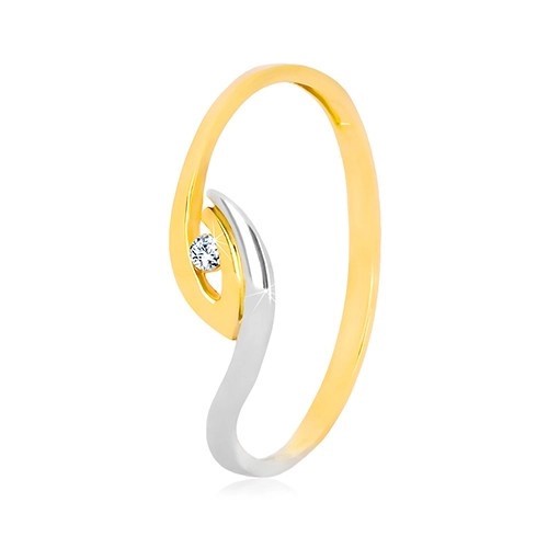 Inel din aur 375 - capete asimetrice indoite ale bratelor, zirconiu stralucitor - Marime inel: 60