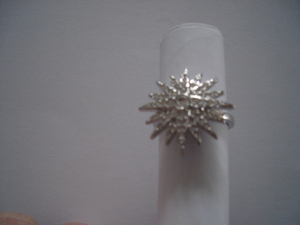 Ofer spre vanzare un inel din otel cu pietricele, frumusel, toate pietrele sunt prezente. Marimea 58 (scrie in interior), diametrul interior pentru deget e de 18 mm. Nu e lovit sau deteriorat.