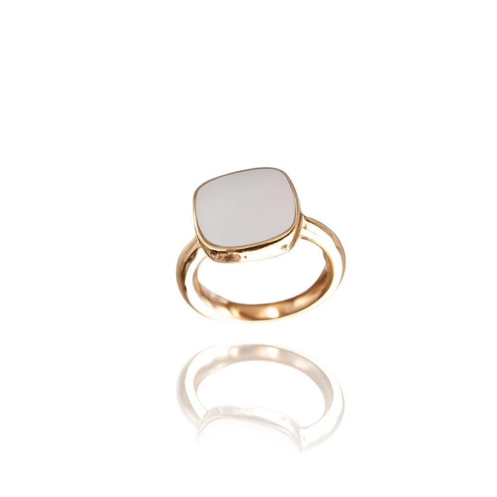 Inel esarfa mic cu email alb este alegerea ideala pentru persoanele care apreciaza accesoriile discrete, dar elegante, capabile sa completeze o tinuta cu un detaliu fin si rafinat. Realizat cu atentie la detalii, acest inel delicat impresioneaza prin designul sau minimalist si prin finisajul auriu cald, pus in valoare de placa cu email alb, cu forma usor rotunjita, ce adauga un plus de luminozitate si stil.
