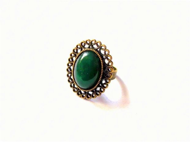 Inel jad verde si bronz, inel reglabil femei 40544. Produs lucrat manual inel reglabil bronz si piatra semipretioasa de jad verde.