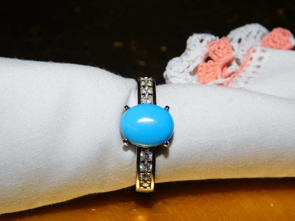 Inel nou, spectaculos, argint 925, etichete atasate , 4.1 grame , piatra centrala turcoaz natural, lateral zirconii