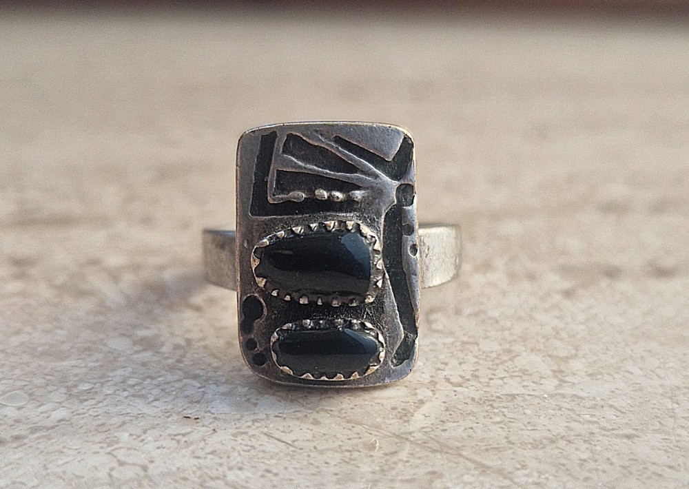 inel vechi argint cu cu 2 pietre din onix negru marime 51 greutate 5,19 grame