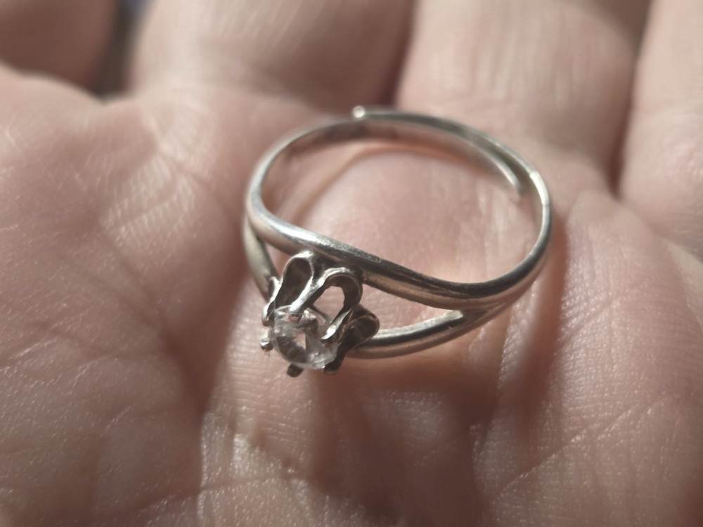 Inel vintage argint cu safir alb, foarte frumos cu marimea de 18 mm