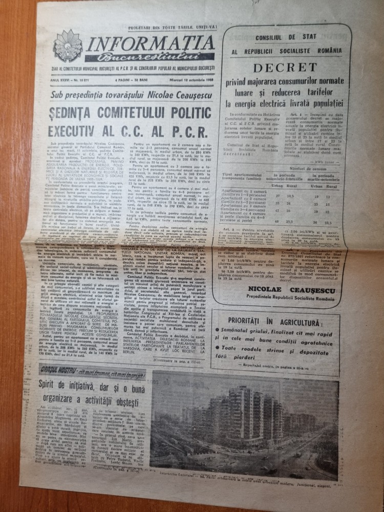 informatia bucurestiului 12 octombrie 1988-sedinta comitetului politic PCR