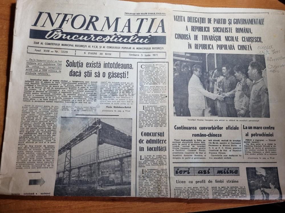 informatia bucurestiului 5 iunie 1971-ceausescu vizita in china,