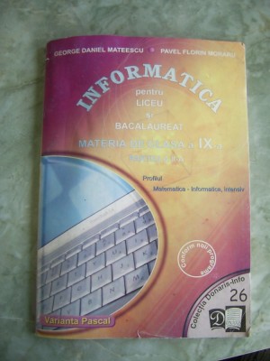 INFORMATICA PENTRU LICEU SI BAC , CLASA A IX A,MATEMATICA INFORMATICA INTENSIV
