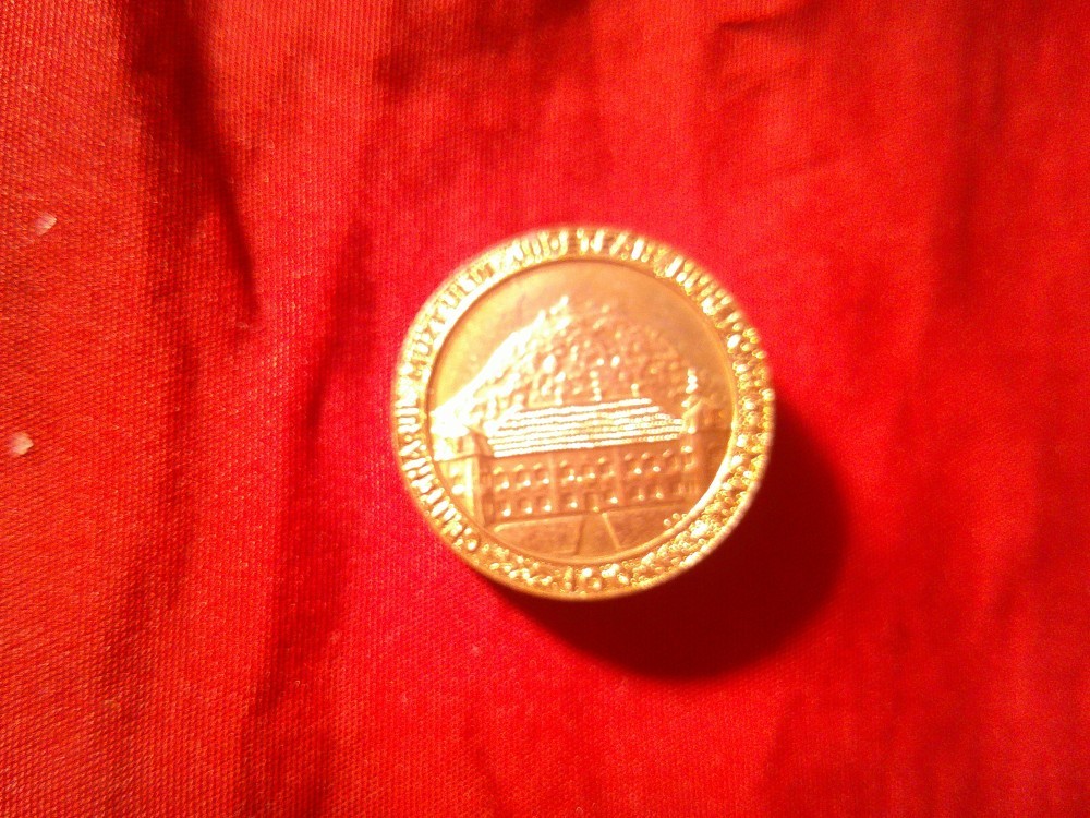 Insigna Centenarul Muzeului Judetean Hunedoara- Deva , alama , d=2,3cm *