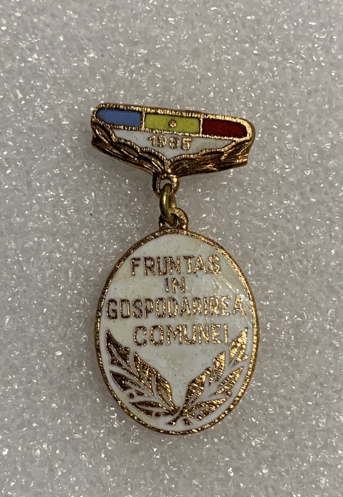Insigna fruntaș în gospodărirea comunei 1985