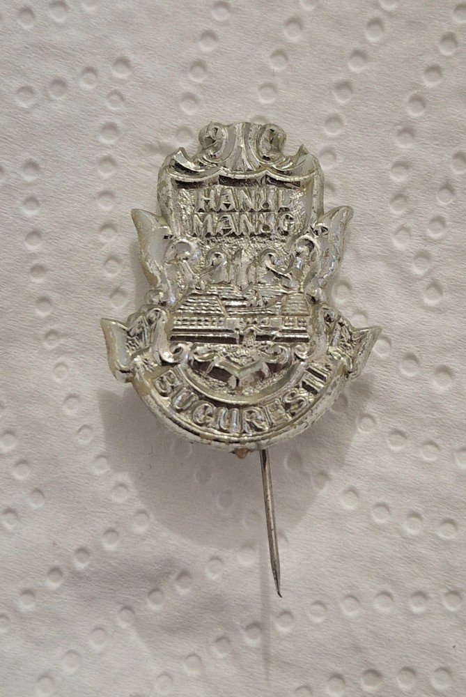 Insigna Hanul Manuc, Bucuresti, lungime 2,8 cm. Suvenir de colectie cu importanta istorica si simbolica.