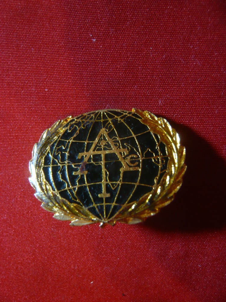Insigna Planiglob AcT , metal si email , L= 3 cm