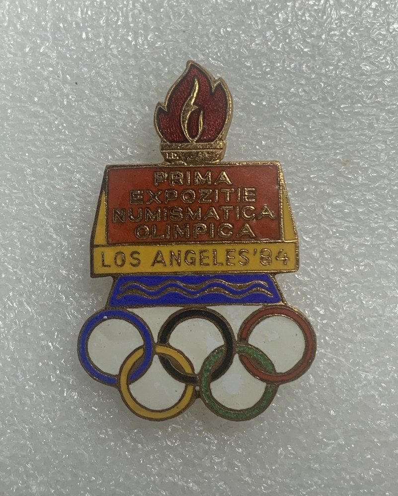 Insigna prima expoziție numismatică olimpică Los Angeles 84