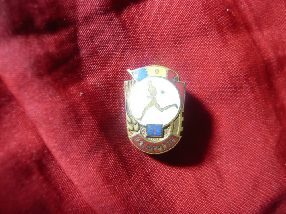 Insigna Sport Romania - Polisprtiv cl. I ,metal si email , h=1,3cm