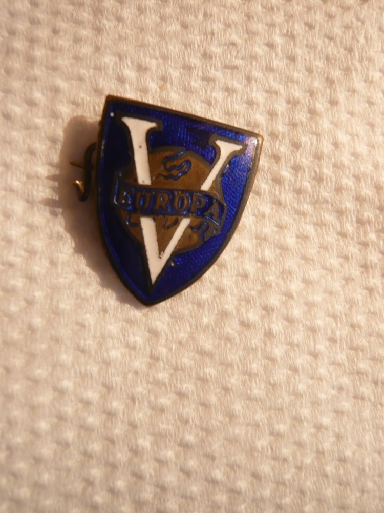 Insigna veche cu inscriptia V Europa , pe Glob