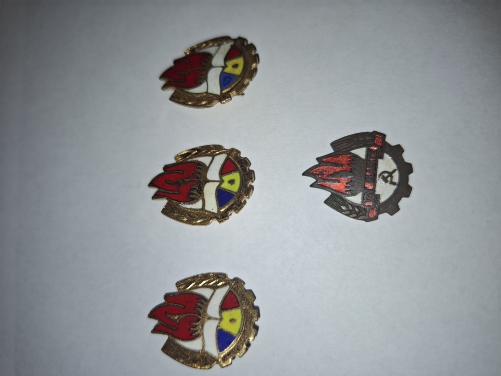 Insigne pionier lot 4 buc, RSR- RPR Tot Înainte