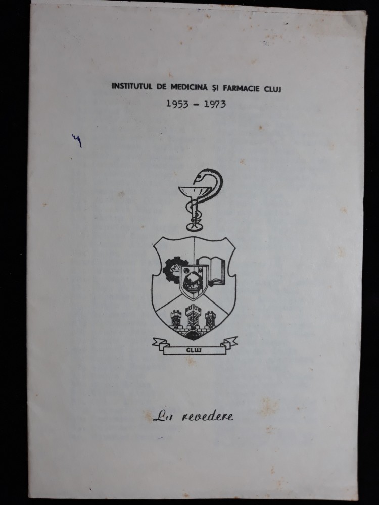 INSTITUT. DE MEDICINA SI FARMACIE CLUJ 1953 - 1973 REVEDERE 20 ANI COLEGI ,PROF.