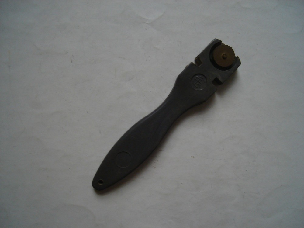 Ofer spre vanzare un instrument vechi diamant pentru taiat sticla, maner din plastic, 12 cm lungime, stare buna.