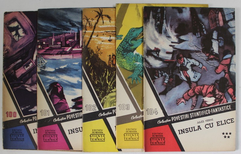 INSULA CU ELICE, COLECTIA POVESTIRI STIINTIFICO FANTASTICE de JULES VERNE , ROMAN IN 5 FASCICOLE , ANII ' 60 - ' 70
