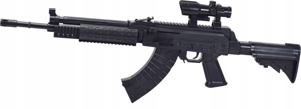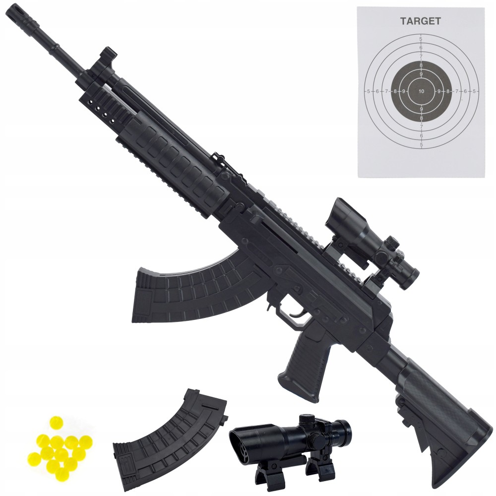 - Pușca este fabricată din plastic ABS durabil, rezistent la lovituri, abraziuni și zgârieturi, ceea ce îi permite să rămână în stare vizuală perfectă