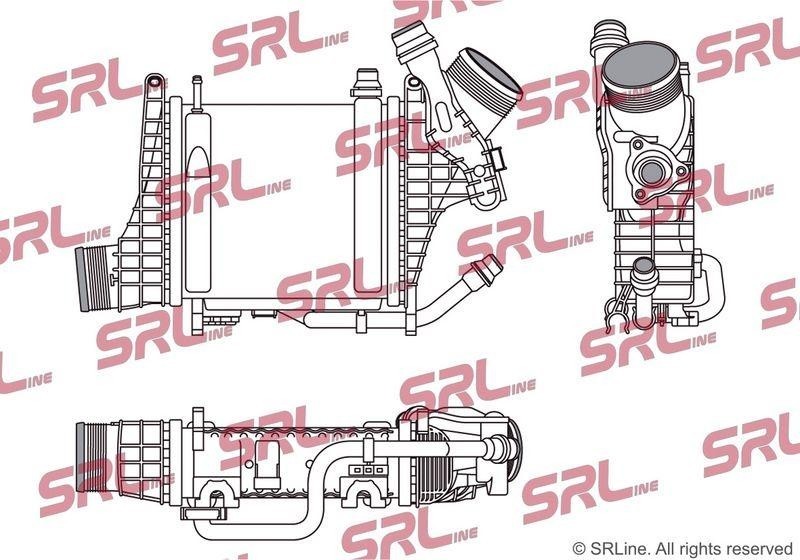 Intercooler Mercedes Clasa C, Clasa CLS, Clasa E, motor: 1.5 T, 2.0 T, intercooler - racire apa, 207x197x64, SRLine, Aluminiu/ Plastic brazat,