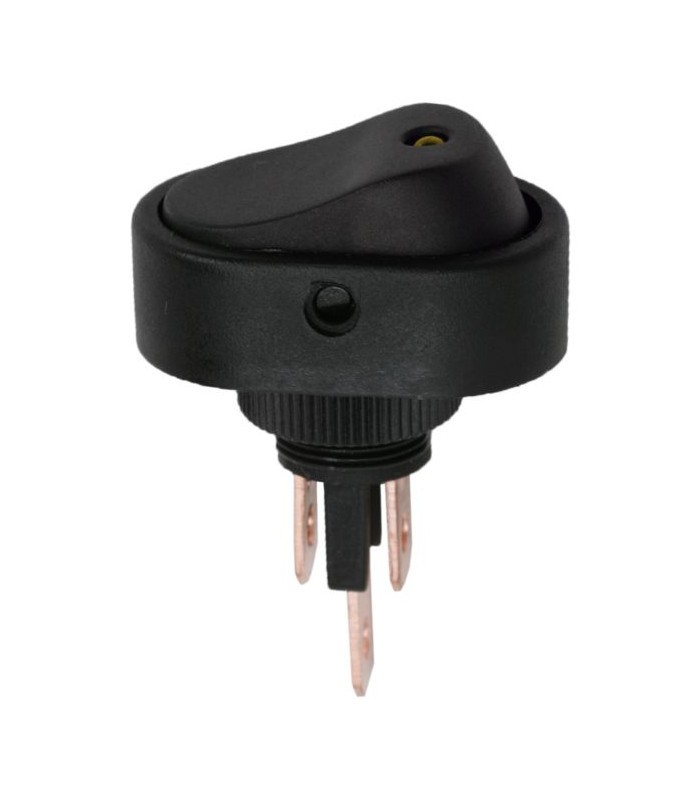 Interupator basculant 1 circuit 12V 20A OFF-ON LED galben cu retinere 2 pini 09047SA