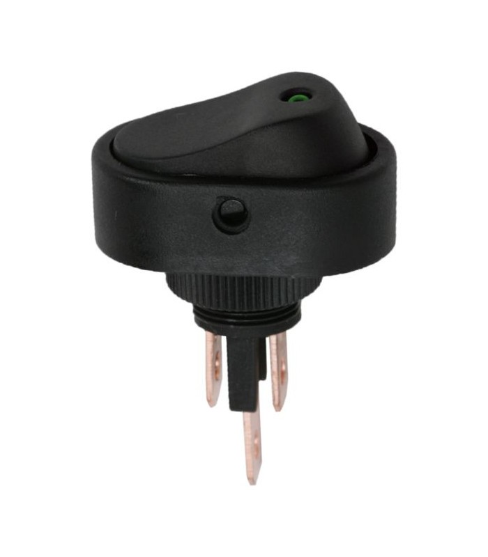 Interupator basculant 1 circuit 12V 20A OFF-ON LED verde cu retinere 2 pini