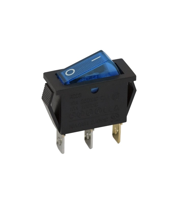 Interupator basculant 3 pini 1 circuit 10A OFF-ON albastru cu retinere