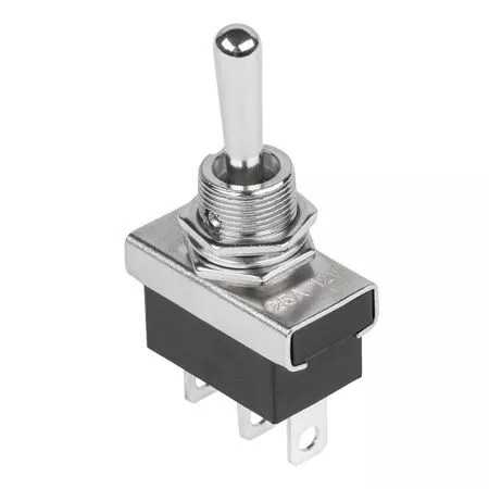 Intrerupator cu 3 pozitii ON-OFF-ON 25A - 12V fara retinere (bistabil). Pozitia stabila a comutatorului este pe centru.