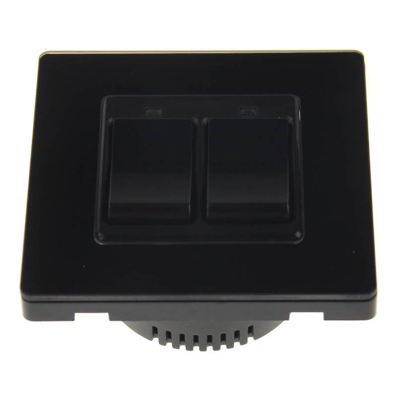 Intrerupator dublu Smart Home WiFi Tuya, cu actionare mecanica, negru, compatibil cu Alexa si Google Home Assistant.