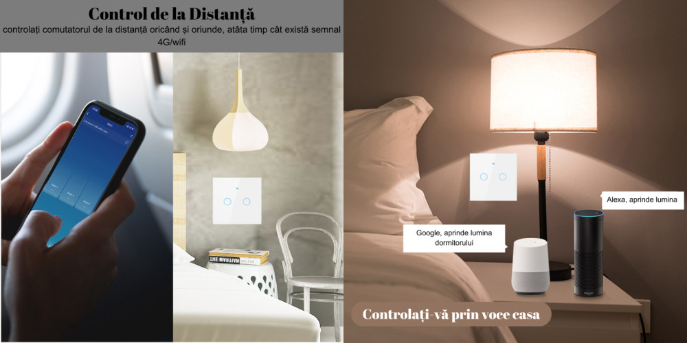 Poate fi controlat de la distanta cu telefonul mobil, indiferent unde va aflati , puteti porni sau opri luminile obtinand controlul oricand si oriunde, facandu-va viata mai confortabila zi de zi.