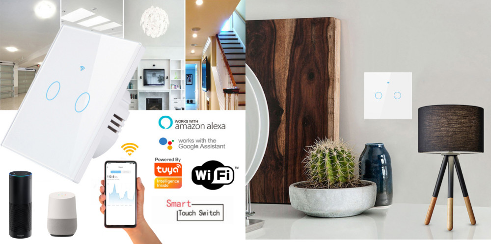 Intrerupator inteligent cu touch, Wireless, VisionHub®, Wi-fi, 2 Canale, Sticla Securizata, Compatibil iOS/Android, Tuya, Amazon Alexa/Google Assistan