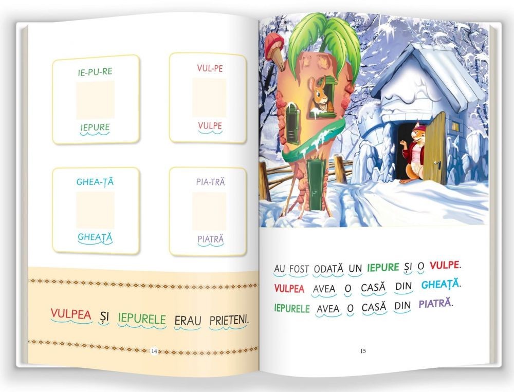 cuvintele despartite în silabe si enunturile scurte de pe paginile
