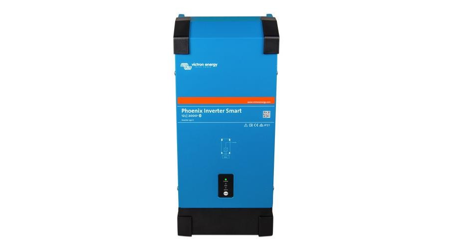 Phoenix Inverter Smart este un invertor eficient și fiabil. Construit pe baza platformei invertorului Phoenix, dovedită și testată pe teren, dispozitivul este acum disponibil într-un design mai subțire, cu o carcasă complet metalică. Disponibil în modele de 1600 VA, 2000 VA, 3000 VA și 5000 VA pentru utilizare cu sisteme de 12, 24 și 48 de volți, puterea de ieșire a dispozitivului este potrivită pentru alimentarea celor mai comune aparate cu priză din mașini, bărci, rulote sau case. Transformatorul toroidal asigură o capacitate tampon de putere de vârf ridicată, o tensiune și o frecvență stabile și o funcționare sinusoidală de calitate superioară. Instalarea este mai ușoară ca niciodată: instalatorul are acces mai ușor la terminale, rezultând un design final profesional. Bluetooth este o funcție încorporată, care facilitează, de asemenea, configurarea invertorului de mare putere. Alarmele, releele de alarmă, tensiunile limită, tensiunea de ieșire, frecvența, modul de economisire a energiei și alte caracteristici pot fi toate configurate în cadrul soluției VictronConnect.