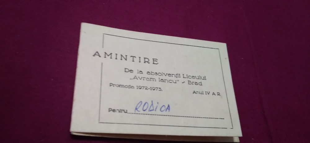 INVITATIE AMINTIRE ABSOLVENTII LICEULUI AVRAM IANCU BRAD PROMOTIA 1972-1973 ANUL IV A R