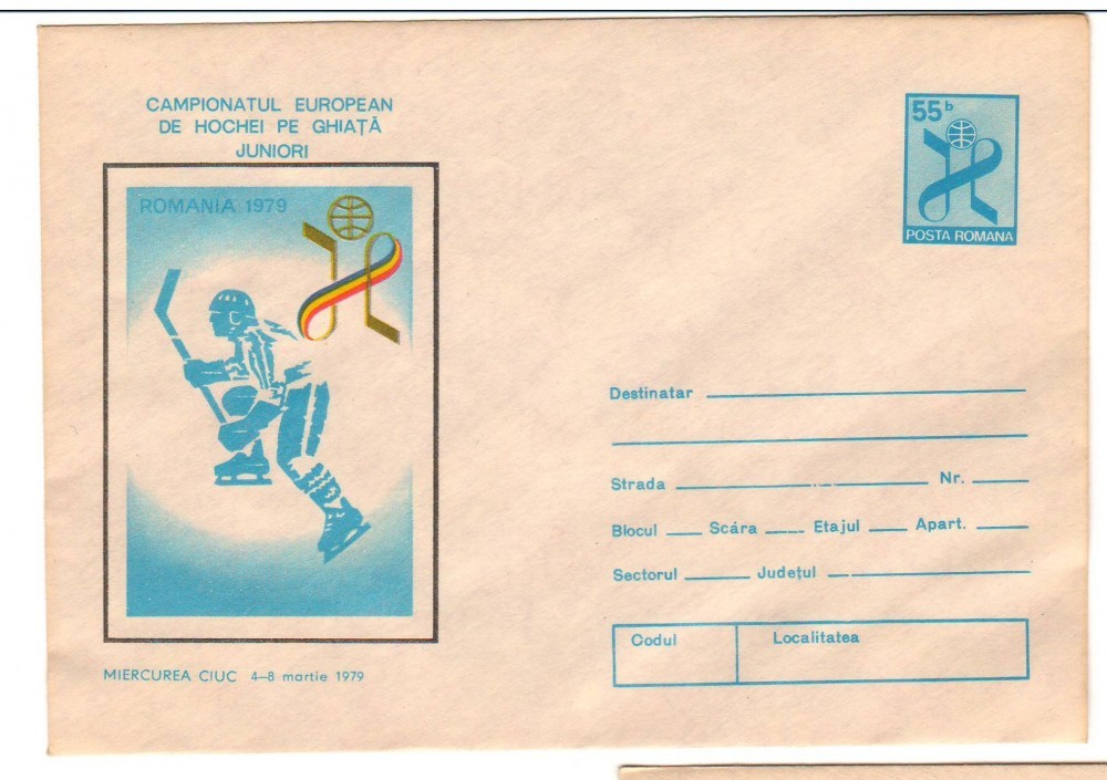 IP 9859 INTREG POSTAL: C.E. HOCHEI PE GHIATA JUNIORI. MIERCUREA CIUC MARTIE 1979