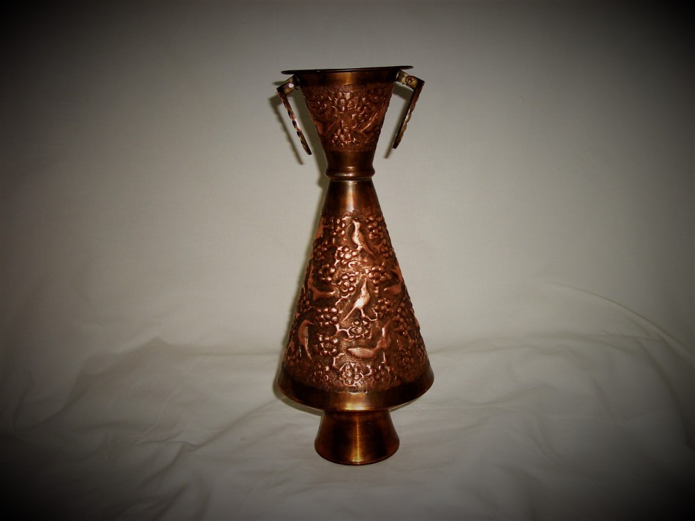 Islamica! Vaza orientala cupru, gravura altorelief, vintage