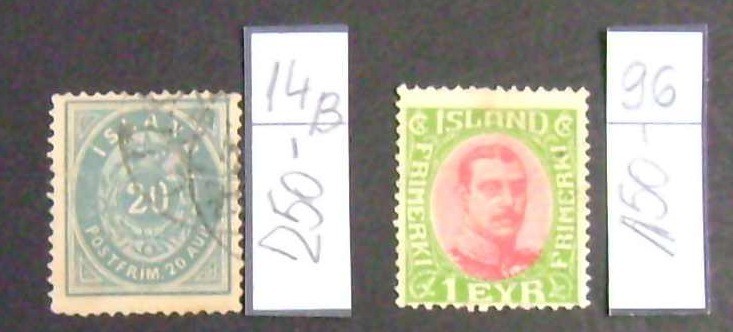 ISLANDA - 2 timbre (unul stampilat si unul nestampilat) de foarte buna calitate si cotate 400 E /cat MICHEL 2004