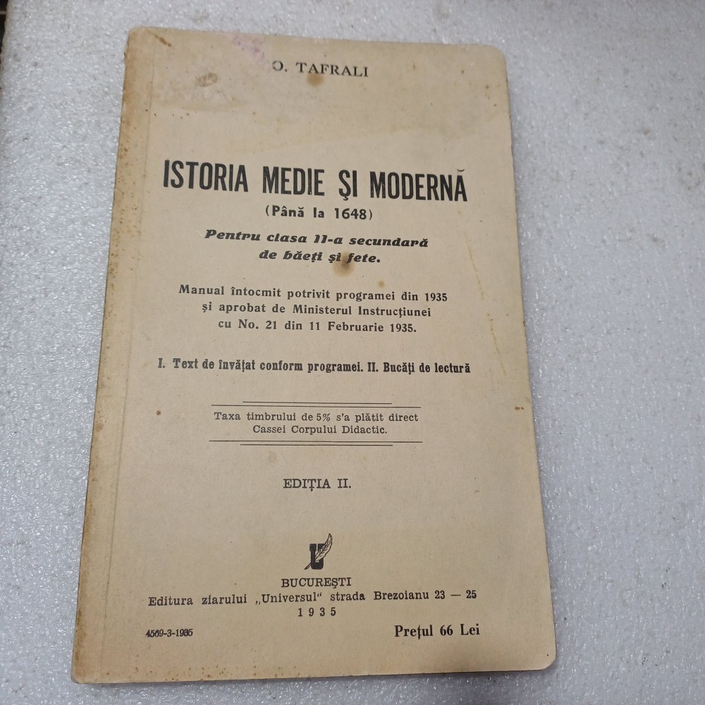 ISTORIA MEDIE SI MODERNA PT.CLASA A 11 A-O.TRAFALI-1935 S2.