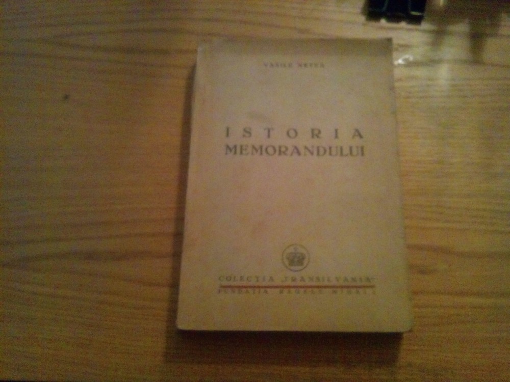 ISTORIA MEMORANDULUI Romanilor din Transilvania si Banat - Vasile Netea -1947