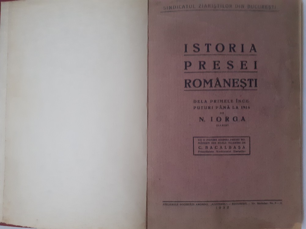 ISTORIA PRESEI ROMANESTI-N.IORGA-1922.