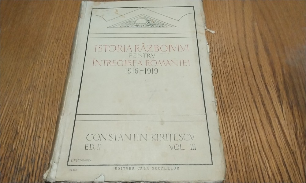 ISTORIA RAZBOIULUI pentru INTREGIREA ROMANIEI 1916-1919 - Editia II -a, Vol. III - Const Kiritescu - Atelierele "Cartea Romaneasca", 1925, 573 p.