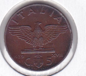 Italia 5 Centesimi Victor Emmanuel III 1939