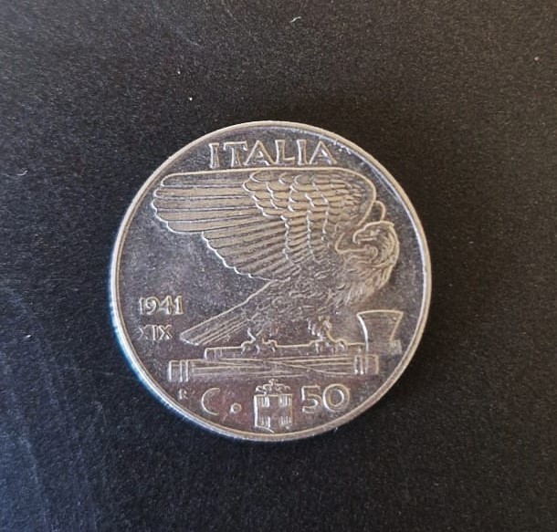 Italia 50 Centesimi 1941 moneda aUNC aproape necirculata acmonital km # 76 Vittorio Emanuele